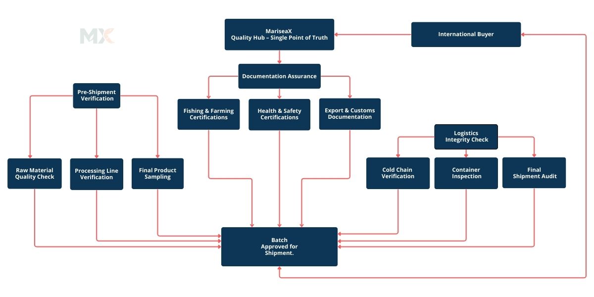 In the world of global Aquaculture and seafood sourcing, confidence isn’t just important it’s everything. At MariseaX, we understand that trust must be earned through transparent processes and rigorous verification at every stage. Our approach to quality control creates a seamless chain of trust that stretches from our partner farms in India directly to your operations.